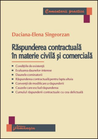 Sunt analizate succint problemele teoretice esentiale, controversate si recent actualizate, precum si solutii jurisprudentiale menite sa ilustreze aplicarea practica a prevederilor legale referitoare la conditiile angajarii raspunderii contractuale, limitele conventiilor de modificare a raspunderii contractuale, cauzele care inlatura aceasta raspundere, precum si modalitatea de evaluare a daunelor-interese si posibilitatea cumularii acestora cu alte tipuri de despagubiri.