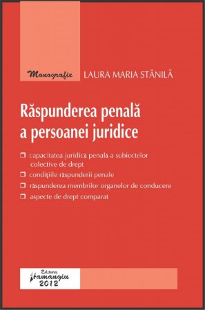 Lucrarea de fata isi propune sa abordeze problematica raspunderii penale a persoanei juridice atat din perspectiva istorica-evolutiva, cat si din perspectiva comparativa, fiind analizate legislatiile penale ale diverselor state care o reglementeaza in sistemele lor de drept. Totodata, se ofera o privire amanuntita asupra modelelor de angajare a raspunderii penale a persoanei juridice conturate de-a lungul timpului, precum si o prezentare a diferitelor tipuri de persoane juridice care sunt recunoscute in legislatia in vigoare. Nu in ultimul rand, sunt prezentate documentele internationale si ale Uniunii Europene in realizarea scopului declarat.