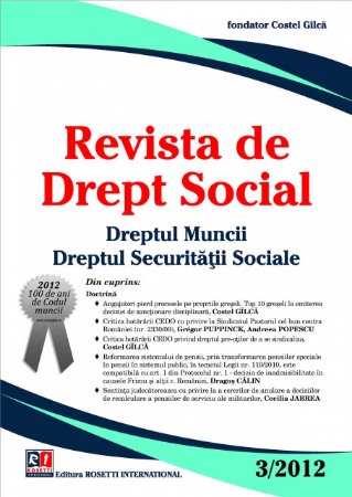 "Revista de Drept Social" - serie noua a aparut incepand cu ianuarie 2011, in format tiparit si online, in urmatoarea structura:1) Doctrina;2) Jurisprudenta;3) Drept european al muncii;4) Drept international al muncii.