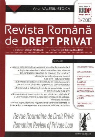 Devenita membru cu drepturi depline al Uniunii Europene, Romania trebuie sa faca fata unor noi provocari juridice. Formularea unor opinii articulate, elaborarea unor teze si teorii bine fundamentate, apte sa serveasca cunoasterii, interpretarii si aplicarii reglementarilor interne, comunitare si internationale, precum si fundamentarii diferitelor politici interne si comunitare, sunt imperios necesare, daca vrem ca Romania sa devina un veritabil actor pe scena economica si politica europeana sau internationala, iar nu sa ramana un simplu spectator. Or, dreptul privat este chemat sa-si aduca o contributie esentiala in aceasta privinta, iar o revista de stricta specialitate care sa serveasca acest scop poate reprezenta un instrument foarte util.