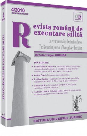 Revista romana de executare silita (R.R.E.S.), revista deja cu traditie (este in anul VIII de la aparitie) se prezinta sub o forma noua, deosebit de atragatoare si atent ingrijita de redactori.