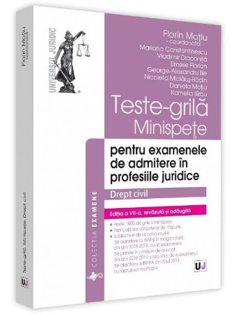 Realizata de un colectiv de autori cu mare experienta, format din judecatori, formatori ai Institutului National al Magistraturii, specialisti din Ministerul Justitiei, avocati si cadre didactice care predau la facultati de drept de prestigiu din tara, lucrarea Teste-grila, minispete pentru examenele de admitere in profesiile juridice. Drept civil. Editia a VII-a, revazuta si adaugita este utila candidatilor la examenele de admitere in profesiile juridice, pentru concursul de admitere in magistratura, pentru examenele de admitere in profesia de avocat, de definitivare sau promovare, precum si studentilor facultatilor de drept, pentru examenul de licenta.