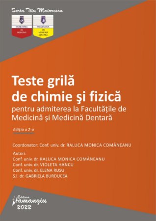 Prezenta lucrare contine teste grila orientative pentru verificarea cunostintelor candidatilor la concursul de admitere la specializarea Medicina a Facultatii de Medicina, respectiv Medicina Dentara a Facultatii de Medicina Dentara din cadrul Universitatii Titu Maiorescu din Bucuresti. Grilele au fost realizate cu 1‐2 variante corecte de raspuns, conform disciplinelor de concurs „Chimie” si „Fizica”.